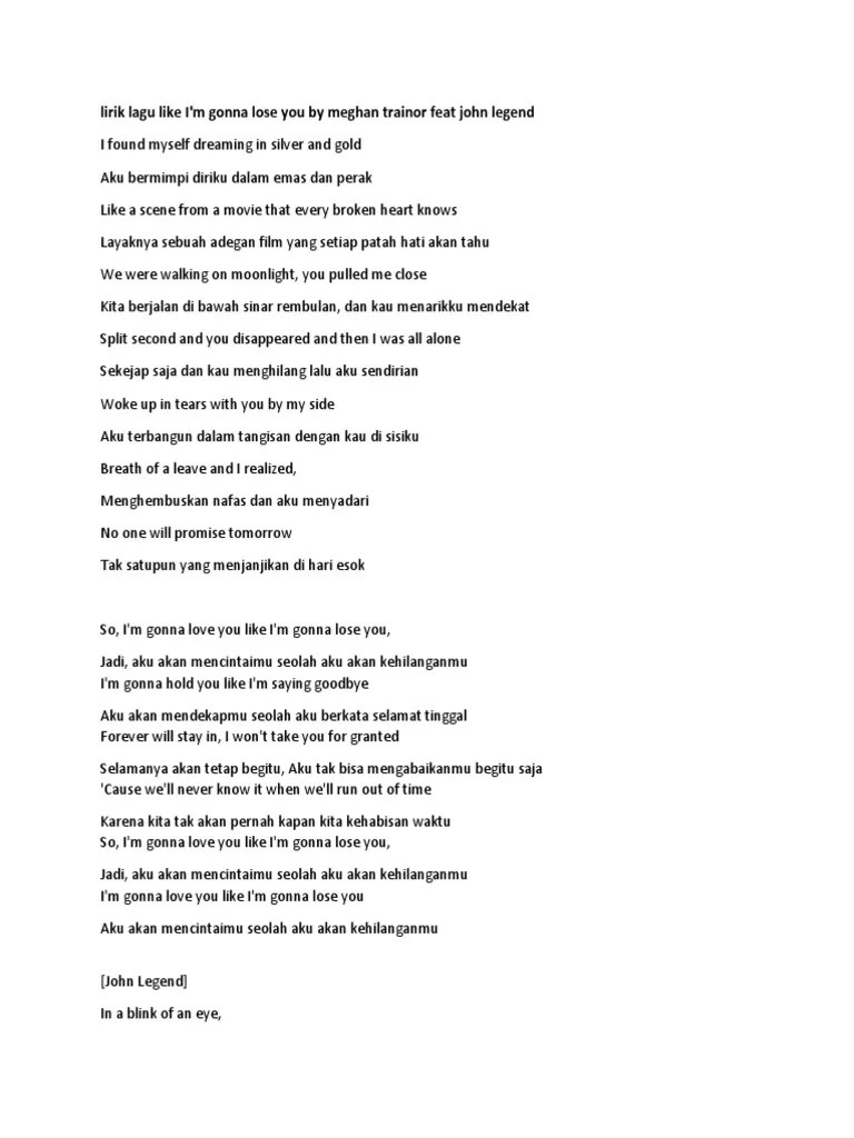 Lirik lagu berjudul i'm gonna love you yang dinyanyikan d.o exo berkolaborasi dengan wonstein dan terjemahan bahasa indonesia. I'm gonna love you forever. I'm going to love you forever, forever and ever amen, as long as old men, sit and talk about the weather, as long as old women sit and talk about old men, . Aku tahu itu bukan urusanku · i'm reminding myself not to say Berikut terjemahan atau arti lirik lagu like i'm gonna lose you by meghan trainor feat john legend.